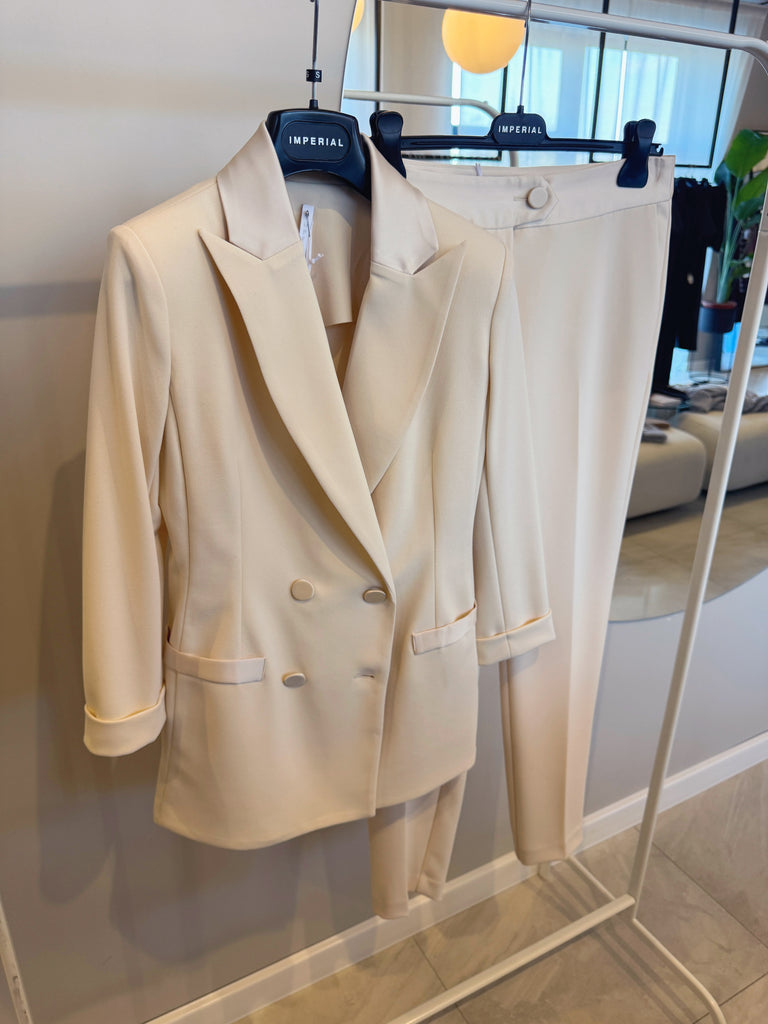 Typ: oblekové sako s 3/4 rukávmi, saténovými detailami a nohavicami